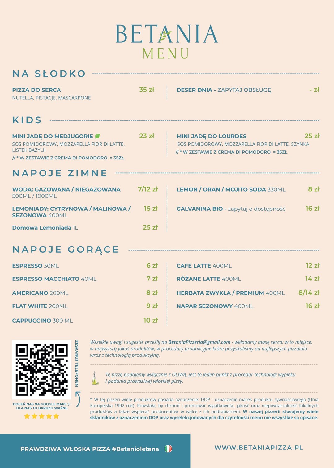 "Betania Pizza Włoska" tu każdy dzień jak w Neapolu, tradycyjne z najlepszej włoskiej mąki ciasto po wyrobieniu trafia na 48h proces wyrastania, dzięki temu procesowi jest lekkostrawne, oryginalne włoskie składniki na pizzy wypiekane są na płycie z lawy wulkanicznej, w piecu opalanym drewnem . Przytulna pizzeria sercu Częstochowy!